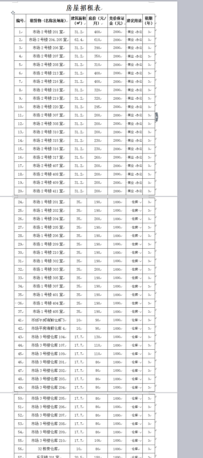 3.本次招租按分项确定承租人(即附表中每个编号的物业确定一个承租人)。